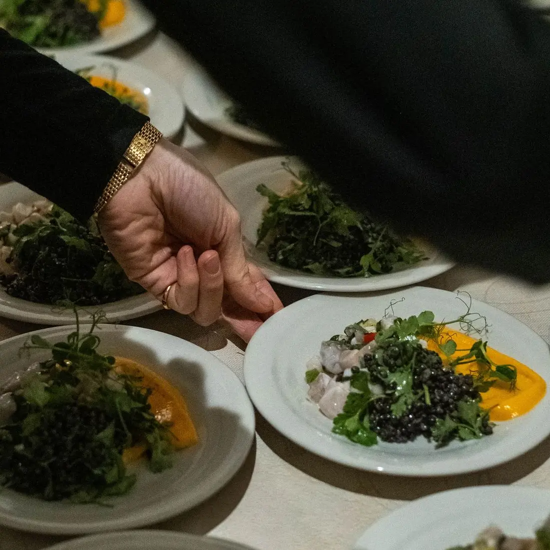 → Custom menu, freshly plated, with a warm, welcoming vibe